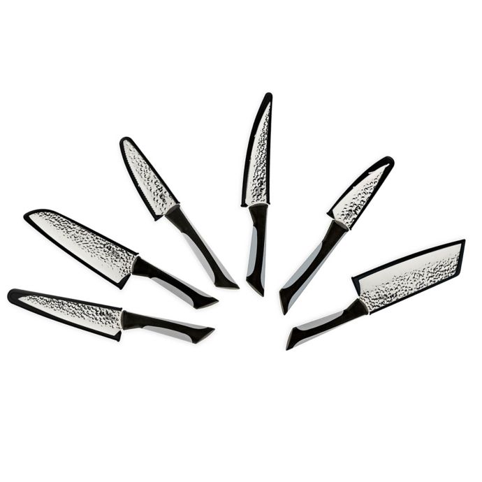 Kai Luna Knife Block Set 6 Piece Kitchen Knives Set with Black Handles Japanese Style Cutlery Includes Chef Utility Paring and Citrus Knives plus Honing and Sharpening Steel. Each knife has a high-carbon stainless-steel blade that is mirror-polished and finished with unique hammered detail. 14 offers from 4631.