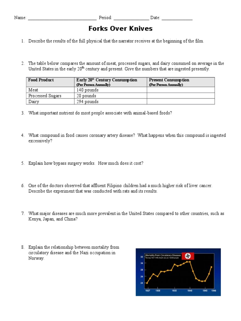 Forks Over Knives Movie Worksheet. Determine what may be eaten that would fit into an accepted menu promoted by Forks Over Knives. Which of the many statistics cited in the film startles you the most and why.